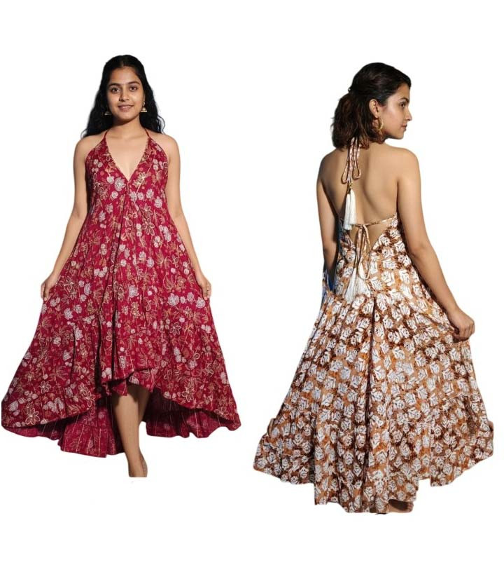 Lurex Viscose Gold Print Frill Doori Dress GC-AP-1637